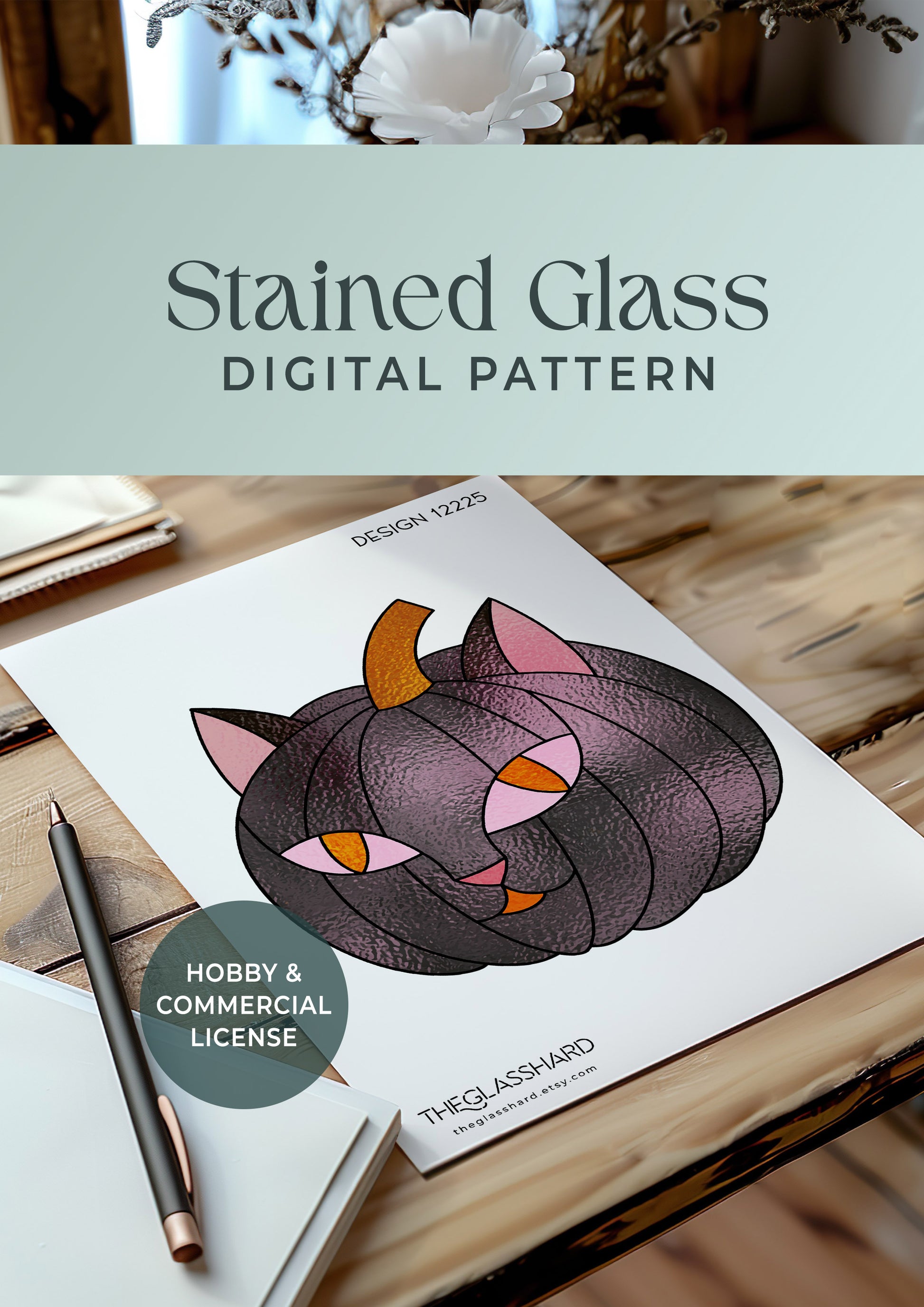 Cat Pumpkin Stained Glass Digital Pattern